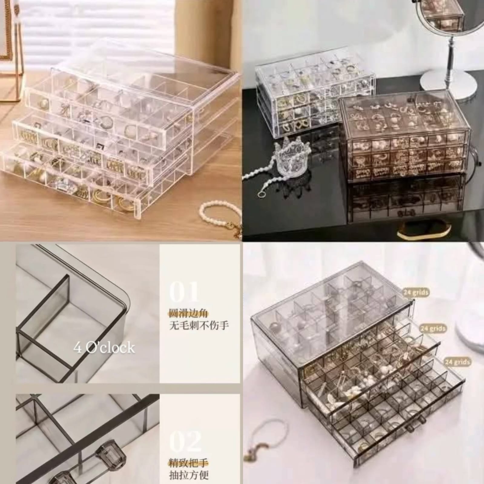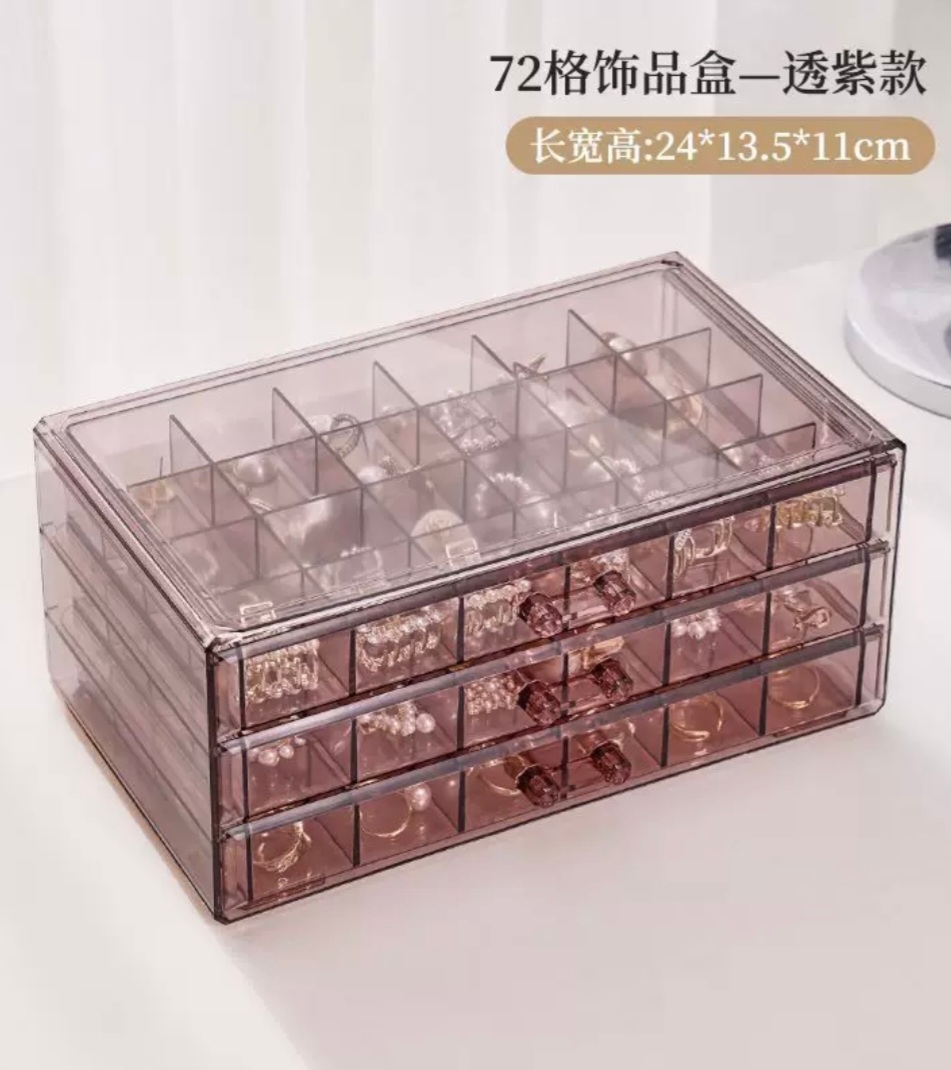 Transparent 3-Layer (72 compertments) Jewellery Organizer Box